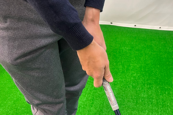 これはフェアウェイウッドに限ったことではありませんが、グリップを握る時にシャフトの上側から握ろうとすると腕の上側に力が入り脇が開きます(PCをタップしているときの向き)。これでは上体と腕が連動できません。