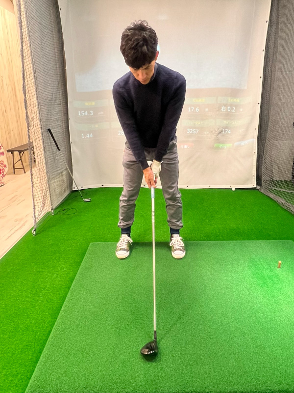 ただ、あまり左に置きすぎるとアドレス時に体が開いてしまってテイクバックが浅い手打ちになりがちです。ちょっとダウンブローに入れたいし、左に置きすぎるとスイングがフラットすぎて左に引っ掛けることもあります。ボール位置によって出る球の高さがどう変化していくのかを試してみてベストポジションを探してください。