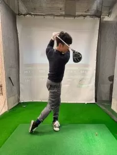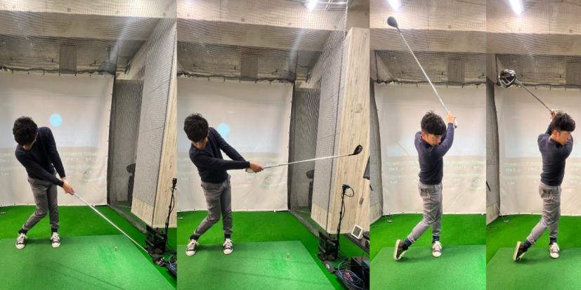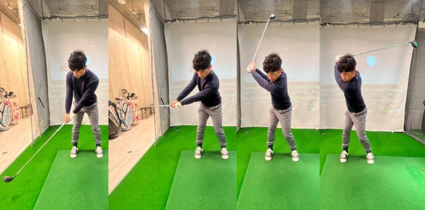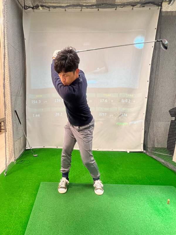 フェアウェイウッドでスライスしてしまう人は、トップの位置から右肩の位置が高いまま回転してしまい、クラブがアウトサイドインになってしまっていることが多いです。