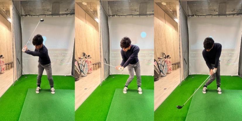 こうなるとボールとクラブヘッドの距離が変わるため、打点がズレて飛距離のロスにつながります。そのため、前傾角度を維持するように注意しましょう。