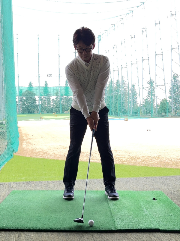 アドレスの理想形は、しっかりと体の軸が決まって股関節に乗る感覚が持てていること。どっしりしているだけではダメで、動き出しやすい構えであることも求められます。相撲の立合い、野球の守備の構え、テニスの構え等々、重心は低いけど動き出しはしやすい態勢を作るのはスポーツでは共通している点も多くありますね。