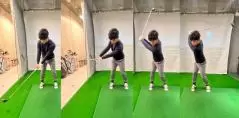 初心者の方は、まず普通にスイング練習をしても滅多に良い当たりをしないので正しいインパクトがどんな感触なのかすらわかっていません。まずは小さいスイングで気持ちのいいインパクトを覚えて、左手の形や頭の位置、足の踏み込み等チェックポイントをクリアにしていきましょう。
