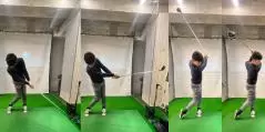 スイング中に体が伸び上がったり、起き上がったりすると、アドレス時の前傾角度が変わってしまいます。