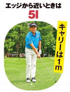 横田 いやいや。何番とか決めずに、FW、5I、7I、9Iの4本を使って、エッジからの距離によって使い分ければいいんですよ。これなら、距離が長いほどロフトの多いクラブでキャリーを多く出せばいいだけで、打ち方はほとんどパターと同じですから、ミスは少なくなります。それこそ、遊び感覚で練習してみてください。