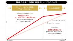 コアの硬度分布を二段階にすることで、スピン性能と飛距離性能を両立させた優れものです。コアの表面に近い部分は、高スピンの状態が実現されており、優れたアプローチショットスピンおよびアイアンスピンがもたらされます。
