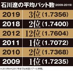 石川遼、デビュー当時から平均パット数の10位圏外は1度だけ!