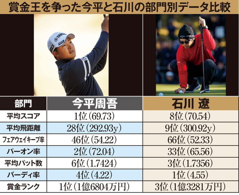 賞金王を争った今平周吾と石川遼の部門別データ比較