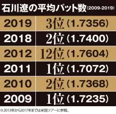 石川遼、デビュー当時から平均パット数の10位圏外は1度だけ!