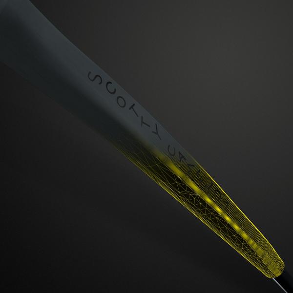 ツアーで実績のある「シングルミッドベント」シャフトを採用したサイドウイングマレット。フェース、ボディに深黒のアルマイト処理を施した軽量6061エアクラフトアルミニウム、ウイングにシルバーミスト仕上げの303ソフトステンレススチールを配置し慣性モーメントを高めている。トップラインには、ネオンイエローが映える3つのミルドサイトドット。セットアップしやすく、正確なインパクトに導く。