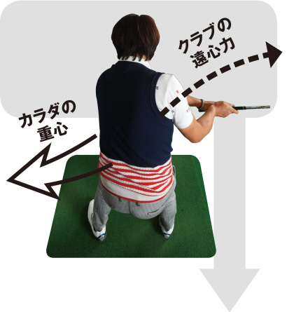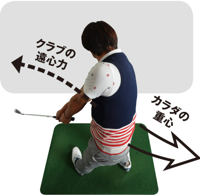 クラブの遠心力と拮抗するように体の重心を動かす