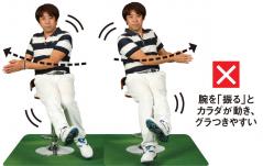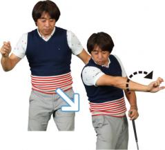 アマチュアはインパクト前後で手首を返してしまいがちだが、それでは再現性が低くなり、腱鞘炎になりやすいリスクもある。クラブを持たずに、前腕をネジる(=回旋)動きを練習してみよう。