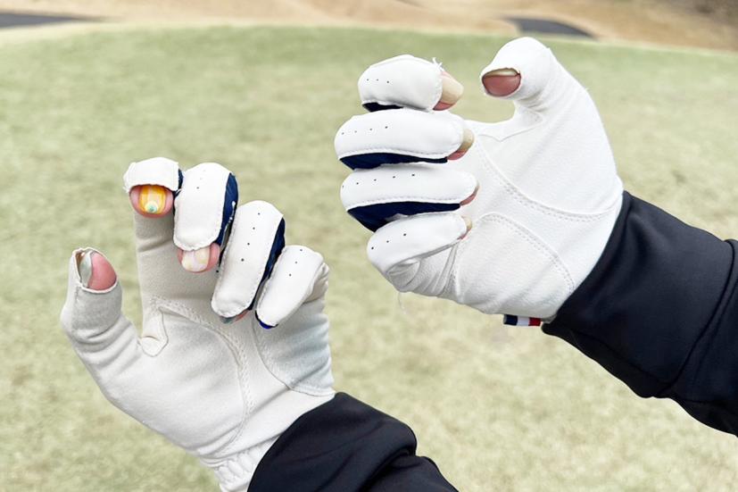 また、手の保護という意味では両手にゴルフグローブを着用するほうがいいでしょう。