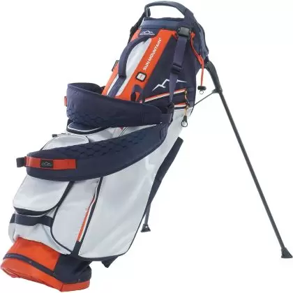 多数のポケットとフード付きで、ラウンド中の持ち運びや収納力も高い仕様。耐久性のある素材と撥水性にも優れており、全天候での使用にも安心です。また、ショルダーハーネスはパッド入りで肩への負荷を軽減しています。