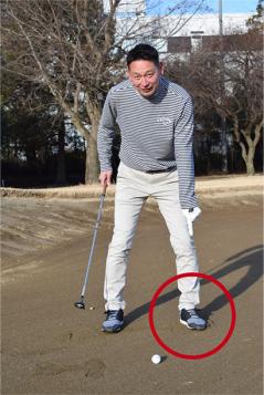 ボールの近くに立って構え、パット感覚で低く転がそう