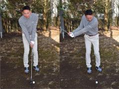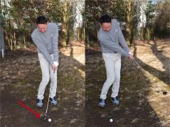 ディボット跡からのショットはボールを内側に置いてダウンブローに打つ