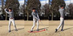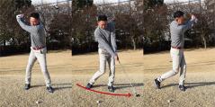 ボールを打ち終えたら、右足を目標方向に一歩踏み出すつもりでスイングしましょう。左足が踏ん張れていれば、簡単にできるはずです。
