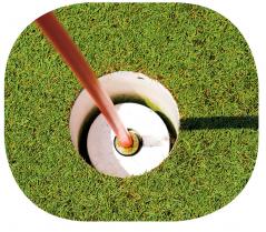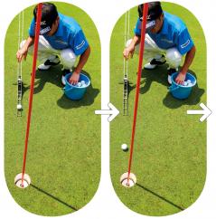 横田 ですから、ジャストで手前からコロがり込む以外は、ピンに蹴られる確率が高くなります。これは予想通りだと思います。次に間口の広い場合ですが、これはピンがカップの奥側に向かって傾いている時が問題で、この場合はピンにボールが乗って、弾むようにして外れることが何度もありました。