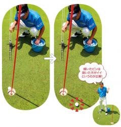 ツアーではデシャンボーのように、ピンを抜かずにパッティングをするプレーヤーは多い。しかし、それはあくまでピンが真っすぐに立っている場合であって、ピンが斜めになっている場合はどうなんだろう?というのがヨコシンの疑問。今回は、この疑問に対する答えを自ら検証して解明していく。