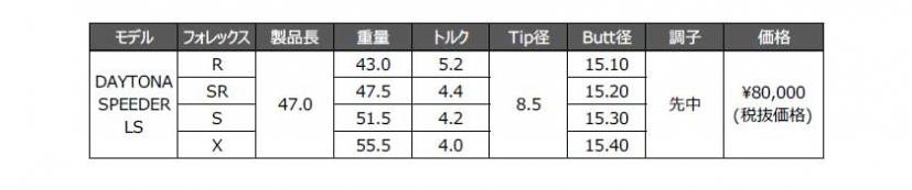 フジクラ史上超高速シャフトである「デイトナスピーダー」に軽量タイプの「デイトナスピーダーLS」が誕生。デイトナスピーダーの素材・テクノロジーを継承し、軽量でありながら飛距離性能をさらに追求している。