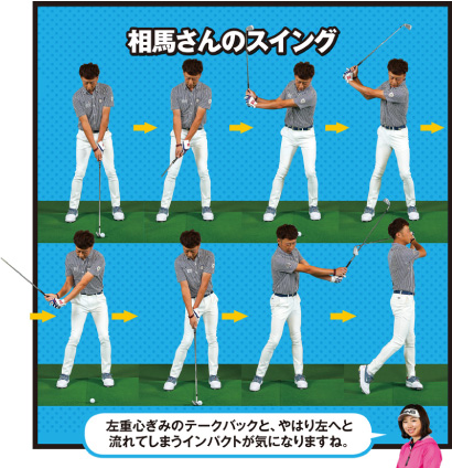 左重心ぎみのテークバックと、やはり左へと流れてしまうインパクトが気になりますね。