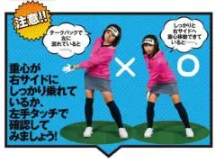 トップまでいったら、左手で右モモの側面をタッチ。正しい重心移動を覚えられますよ。