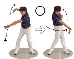 左右の腕を別方向に動かせば、スイング軸は安定する