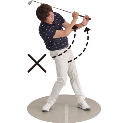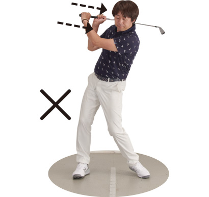 後ろ方向のカウンターの力が入らないと、バランスを崩して、前のめりになったり、のけぞったりしやすいし、ヘッドも走らない。