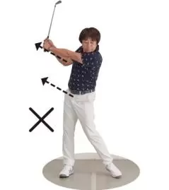 下半身の土台はあまり動かず、その上で上半身が大きく捻転され、上下の分離が出来ているバックスング。コンパクトながら捻転差が大きい。