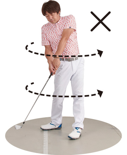 上半身と下半身の動きが分離せず、同一方向に動いてしまうと、パワーが生まれず、バランスも悪くなる。