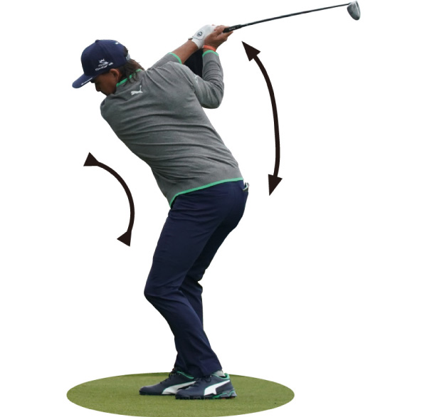 左サイドは縮み、右サイドは伸びる。分離が行われたバックスイング
