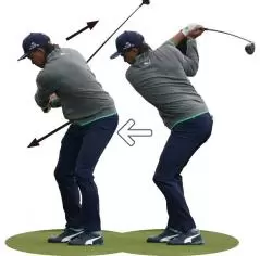 右手と左手が揃って、同じ方向に動いてしまうと、下半身は流れてしまいやすく、スイングのバランスが崩れる。