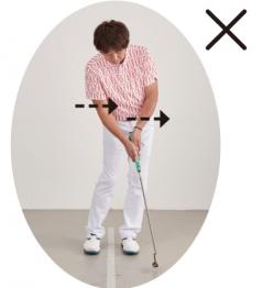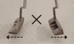 パターが動く方向の逆に、頭が動いてしまうストローク。頭自体が重く、軸が傾くので、軌道はブレやすく、傾斜にも弱い。