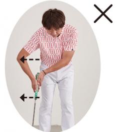 ヘッドを本当に真っすぐ動かそうとするなら、腕をカラダから離すしかない。それに、手首やヒジも動きやすく再現性が悪くなる。