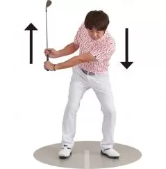 左手が下に向かって右手が上に向かう。カラダの左右が分離して動くテークバックが体感できる。この動きが身につくと、カラダの軸が安定して保たれる。