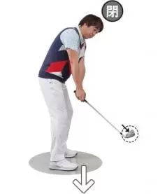 ゴルフクラブの特性上、フェースはスイング中、開閉を自然に行う。それを利用して、テークバックで閉じておけば、トップで「開」、ダウンスイングで「閉」となり、再現性が高く、ボールをつかまえられるスイングになる。