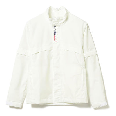 生地が濡れないように水滴の転がりをよくして撥水力を改良した水神レインブルゾン。首スピンドルと前ファスナー仕様で雨の侵入を防止しています。雨の程度やゴルフのシーンに合わせて半袖と長袖の着脱が簡単にできます。