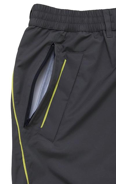 実践的に装備された主なポイントは、ムレを軽減するベンチレーション(通気孔)、だぶつきを抑えるウエストと裾の調整タブ、気温などに合わせて取り外しできる袖など。ボールやマーカーなどの出し入れも、インナー貫通ポケットで中のパンツのポケットにスムーズに手を入れられる仕様になっています。