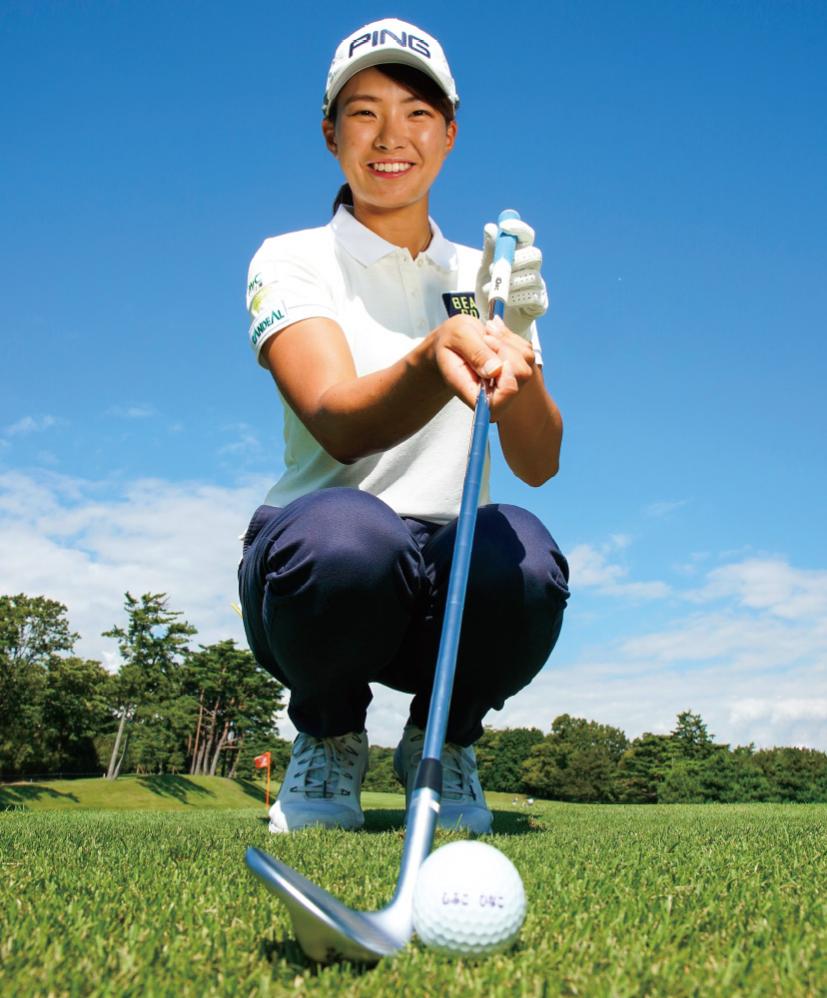 と語る。そんな渋野日向子の最新アプローチを見るとラフからでもインパクトがハンドファーストになっており、ヘッドが上から入っている。これが19年の快進撃につながった。