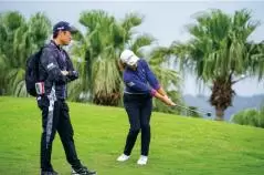 約2年前に渋野日向子が初めてのプロテストに不合格だった直後から指導する青木コーチ。「全英女子オープン」ではキャディも務め、優勝に貢献。1 2年に「青木翔ゴルフアカデミー」を設立してツアープロからジュニアゴルファーまで幅広く指導。
