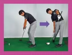 手元が低いだけで、フェースはインパクトでかぶってチーピンが出る。女子プロのようにインサイドからヘッドが下りてきても手元の高さをキープすることで、自然なヘッドの返りになりドローボールが打てる。