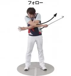 また、「テコ」が入ると、左右の腕が分離して逆方向に動き、縦回転する上半身に分離して、下半身が横回転しやすくなります。ここで紹介した2つのドリルで、フォローサイドでの「テコ」の使い方を習得してください。