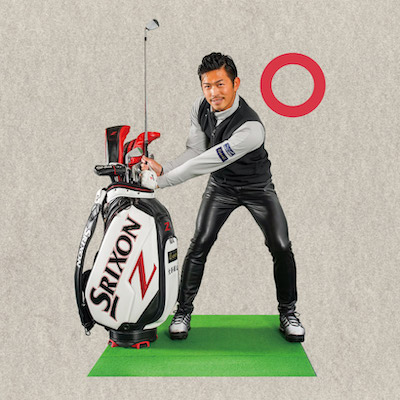 [押し込み]ポイント2|前傾が崩れると球は左右に飛ぶ