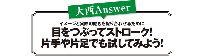 軌道がブレると感じたら→片手ずつストロークして、どちらの手がイメージと合わない動きをしているか確認!