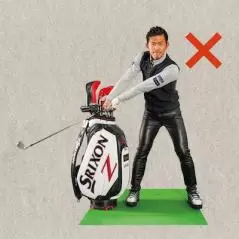 ここでクラブを体に引きつけて無理やりコックを作ろうとすると、ヘッドが垂れてリリースしてしまう。