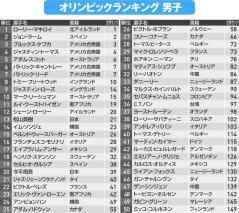仮に現段階のオリンピックランキングで代表が決まるとして、その顔ぶれを見てみよう。