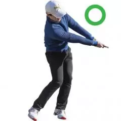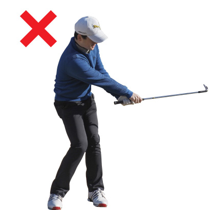 ヘッドを飛球線方向に真っすぐ出すイメージで振る。