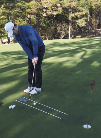 「曲がりなど考えず2つの棒の間を通すことだけに集中すれば、自然とスクエアにストロークできるようになります」