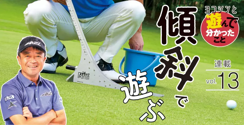 ゴルフにまつわる“遊び”にヨコシンがレッスンを加えることで小技が学べる、この連載。今回は、傾斜にかかるパッティングの打ち方をゲット!
