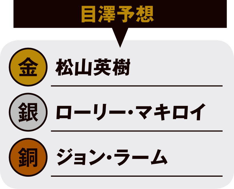 日本の芝は彼が1番理解していると思うので金メダル。マキロイとラームはゴルフゲームの総合力が群を抜いているので期待大ですね。