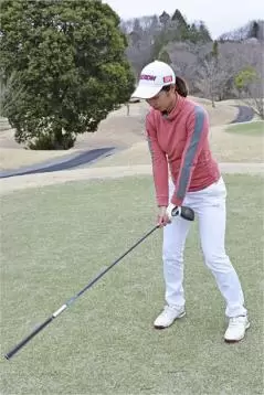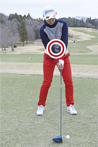 私がもう一つ心がけているのは、肩や腕が力まないようにアドレスでお腹に力をためる感じで引き締めておくこと。そうするとグリップをソフトに握る感覚が生まれて、テークバックでクラブをゆっくりと始動しやすくなります。